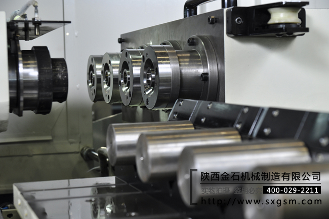 工件裝夾:依靠尾頂及導(dǎo)向套上的錐盤(pán),以工件兩端的倒角準(zhǔn)確定位工件;尾頂液壓伸縮夾緊工件。" />