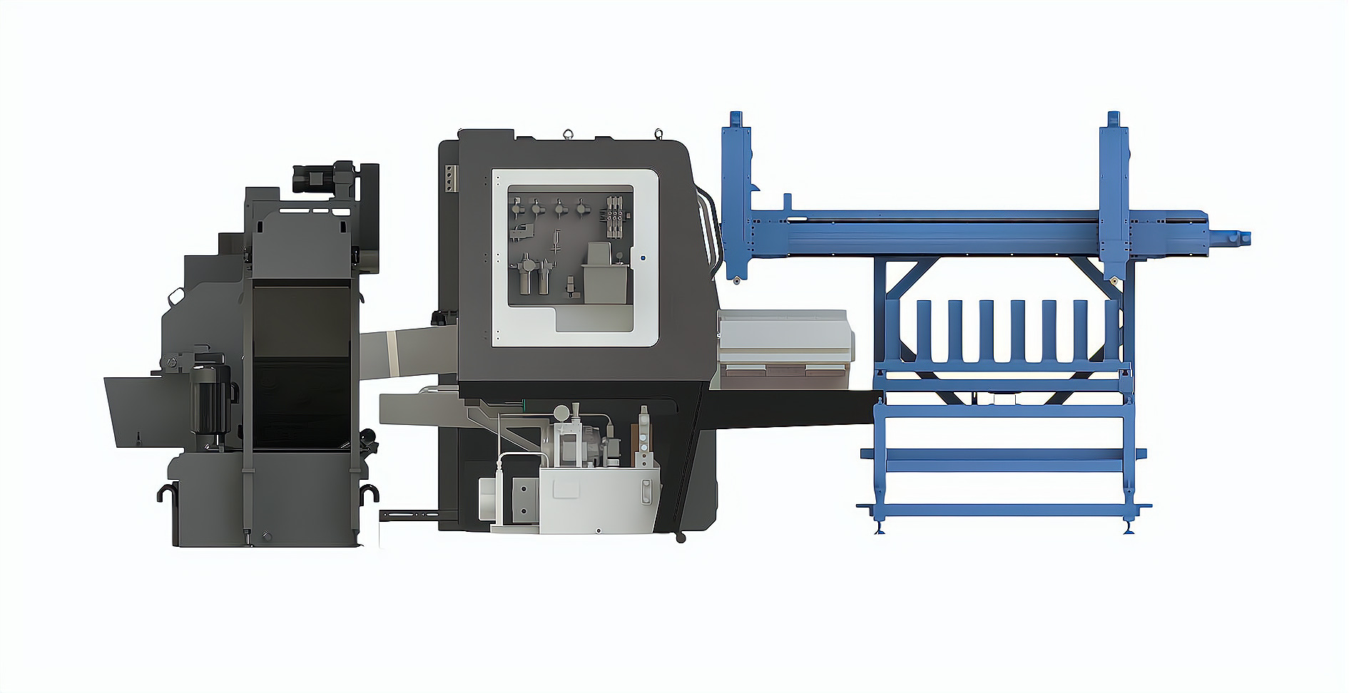 ZK2120×4B/500A 深孔鉆床配置桁架機械手,加工新能源電機軸,單機自動化