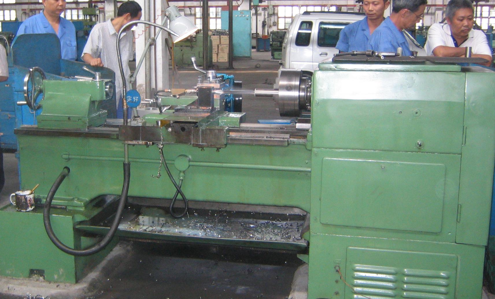 開啟機(jī)床,待機(jī)床主軸旋轉(zhuǎn)穩(wěn)定后,打開自動(dòng)走刀進(jìn)入切削狀態(tài),鐵屑連續(xù)飛出。