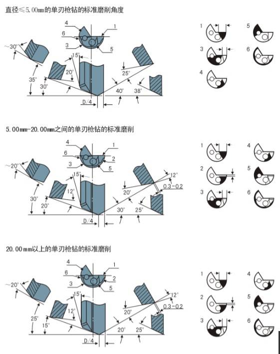 槍鉆,做為一種高效率高加工精度的孔用刀具,目前在各行各業(yè)的應(yīng)用越來越廣泛。槍鉆在制造過程中,端刃刃磨角度、油隙角、倒錐角度等,對(duì)槍鉆的使用效果影響很大,下面分類加以說明。